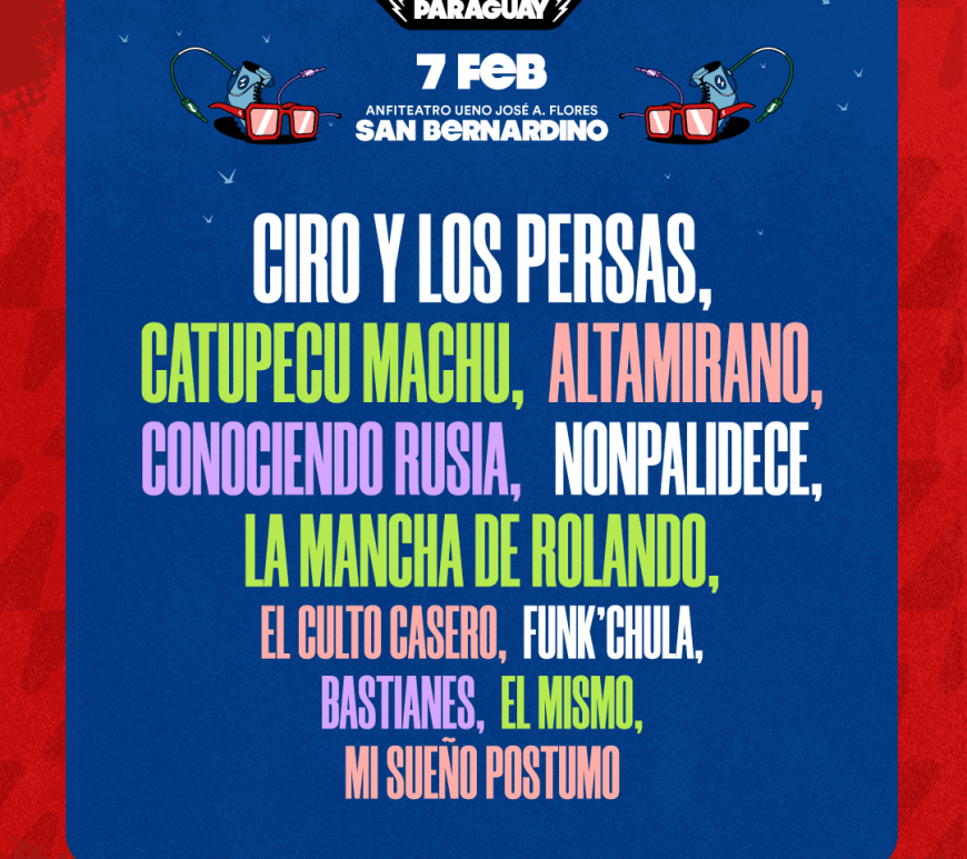 El Anfiteatro José Asunción Flores de San Bernardino se prepara para recibir a Ciro y los Persas, Catupecu Machu, Altamirano y muchos mas, el próximo Sábado 7 de Febrero. El Cosquín Rock nacido en Córdoba (Argentina), próximo a cumplir 26 años, se ha consolidado como uno de los festivales más importantes del rock latinoamericano y ha logrado expandirse, además de Paraguay, a México, Colombia, Perú, Chile, Bolivia, Uruguay, Costa Rica, … Continúa leyendo COSQUÍN ROCK PARAGUAY 2026 anuncia horarios