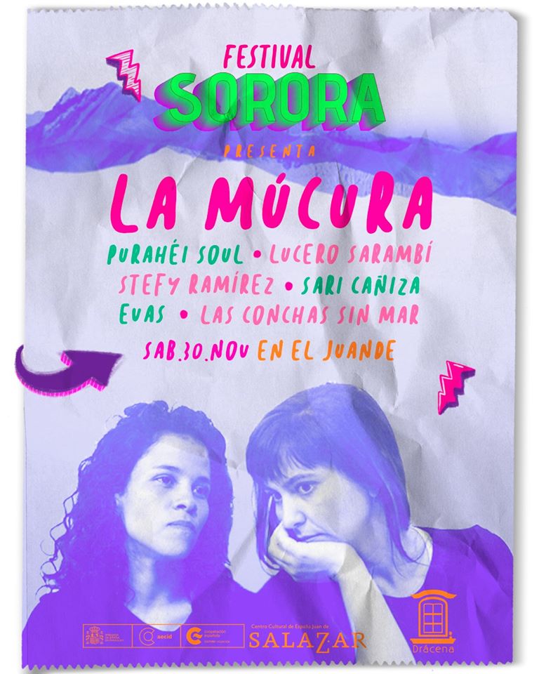 Este sábado 30 de noviembre desde las 16:00 hs y hasta las 22:00 hs, se realizará el Festival Sorora con la presencia de la banda colombiana «La Múcura» y las bandas y artistas locales Purahéi Soul, Las Conchas sin Mar, Evas, Lucero Sarambí, Sari Cañiza y Stefy Ramírez.