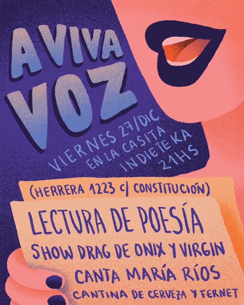 Este viernes 27 de diciembre se realizará el evento denominado «A Viva Voz» en La Casita Indieteka. Habrá lectura de poesia, show drag con Onix y Virgin MaryCon y la presentación de la cantautora María Ríos.