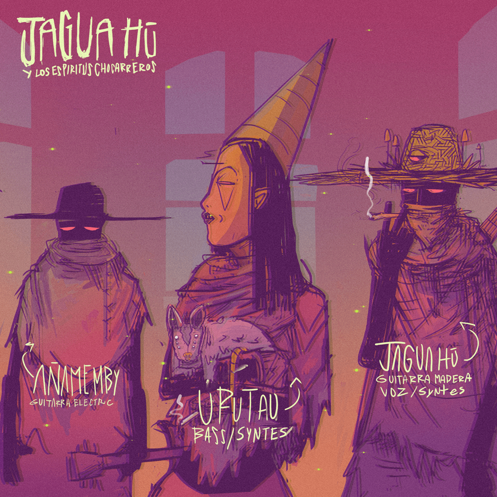 Allá por la cordillera, se dice que a los alrededores del cerro Hû, unos chamanes en extrañas circunstancias, entre brebajes y humos traducen las frecuencias musicales y mensajes pseudo existenciales a espectros entendibles, (o no, capaz que se siga sin entender) para este plano/tiempo/espacio. Así llega Refugio, el 3er material de Jagua Hû y los espíritus chocarreros».