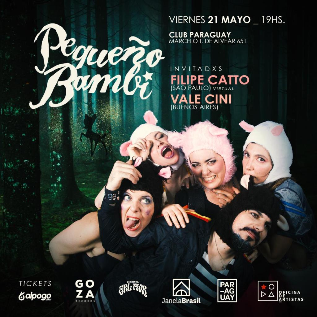 Pequeño Bambi se conforma por: Karol Zingali (voz) artista visual, performer y directora de Oficina de Artistas – Agencia de Booking y Producción; Vivi Pozzebón (batería) es referente de la percusión afrolatina, Co-directora del proyecto “Women to the Drum” e integrante del cuarteto vocal De Boca En Boca; Eva Gou (voz) lleva su proyecto solista, produce música para animación, es coach vocal y con su hermana Elli Rivarola (guitarra eléctrica) tienen el dúo Eli y Luci Rivarola que van de lo indie a lo folclórico, de lo acústico a lo electrónico; Joel Costas (bajo) lleva adelante el proyecto El ReFolk mixturando el rock y el folclore.