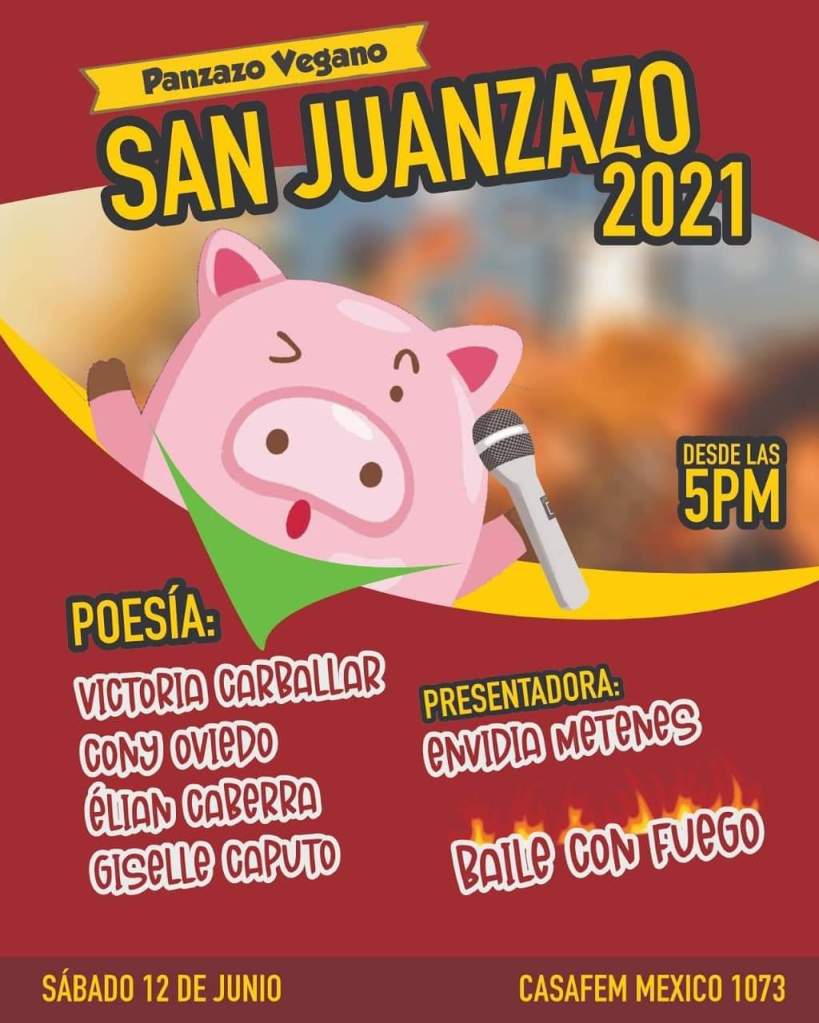 La organización comunitaria y feminista Casa Fem invita al Festival y feria del Panzazo Vegano «San Juanzazo 2021» que se llevará a cabo este sábado 12 de junio desde las 17 hs. en su local situado en México 1073 casi Tte Fariña (centro de Asunción).
