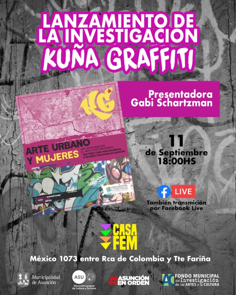 A las 18:00 se realizará la presentación de «Kuña Graffiti» un trabajo de investigación de Gabriela Schvarztman en donde recopila y visibiliza el trabajo y arte de mujeres en el graffiti.