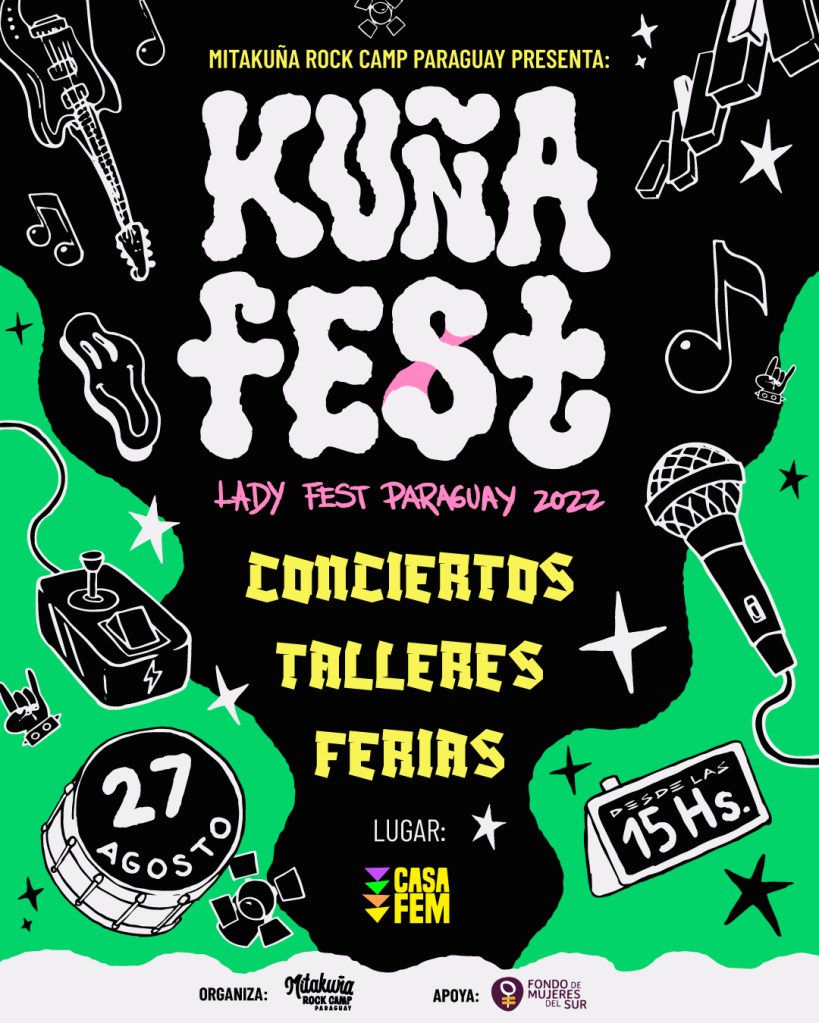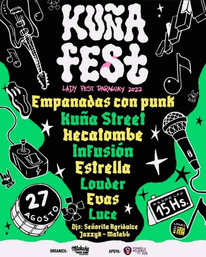 Este sábado 27 de agosto vuelve el KuñaFest, el Festival pionero en dar mayor visibilidad a mujeres y disidencias del ambiente del Rock, Punk, Pop y otros en Paraguay. Este año se cumplen 16 años desde su primer evento.