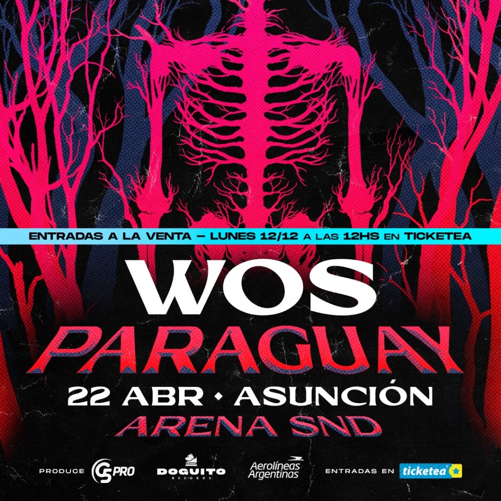 WOS llega a Asunción con su gira Oscuro Éxtasis para sorprender con una puesta en escena impresionante a la altura de su protagonista. El 22 de abril de 2023, el ARENA SND será testigo de su conexión con el público y de un concierto que promete ser el mejor del año, las entradas ya están a la venta a partir del Lunes 12 de diciembre en todos los puntos de Ticketea y podrán ser adquiridas también desde www.ticketea.com.py.