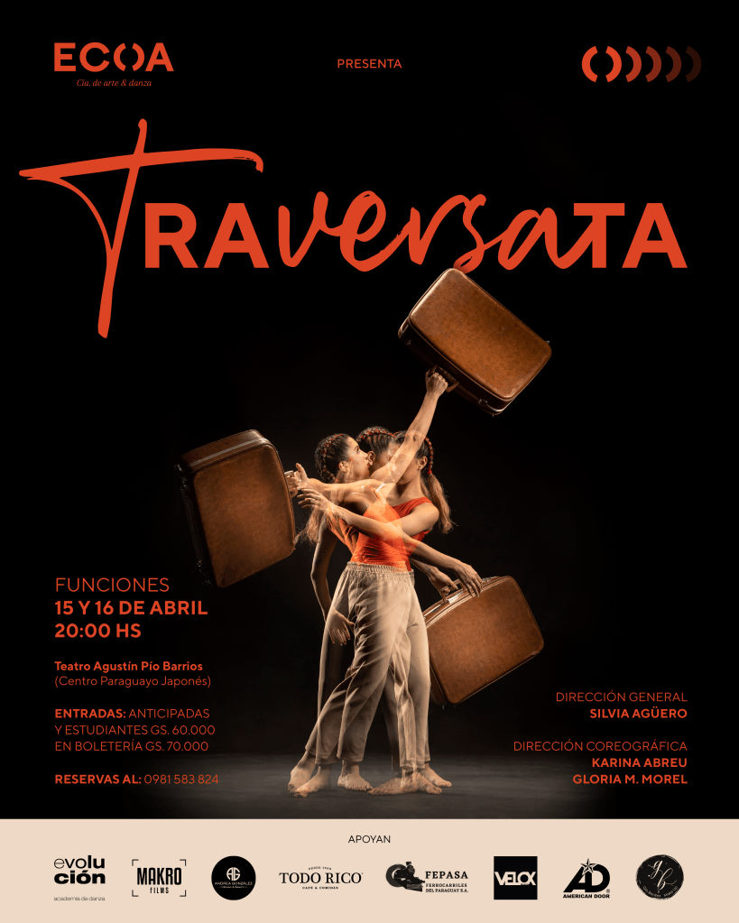 La COMPAÑÍA DE DANZA ECOA presenta “Traversata”, una puesta de danza contemporánea que subirá a escena los días 15 16 de abril a las 20:00 Hs. en el Teatro Agustín Pío Barrios del Centro Paraguayo Japonés