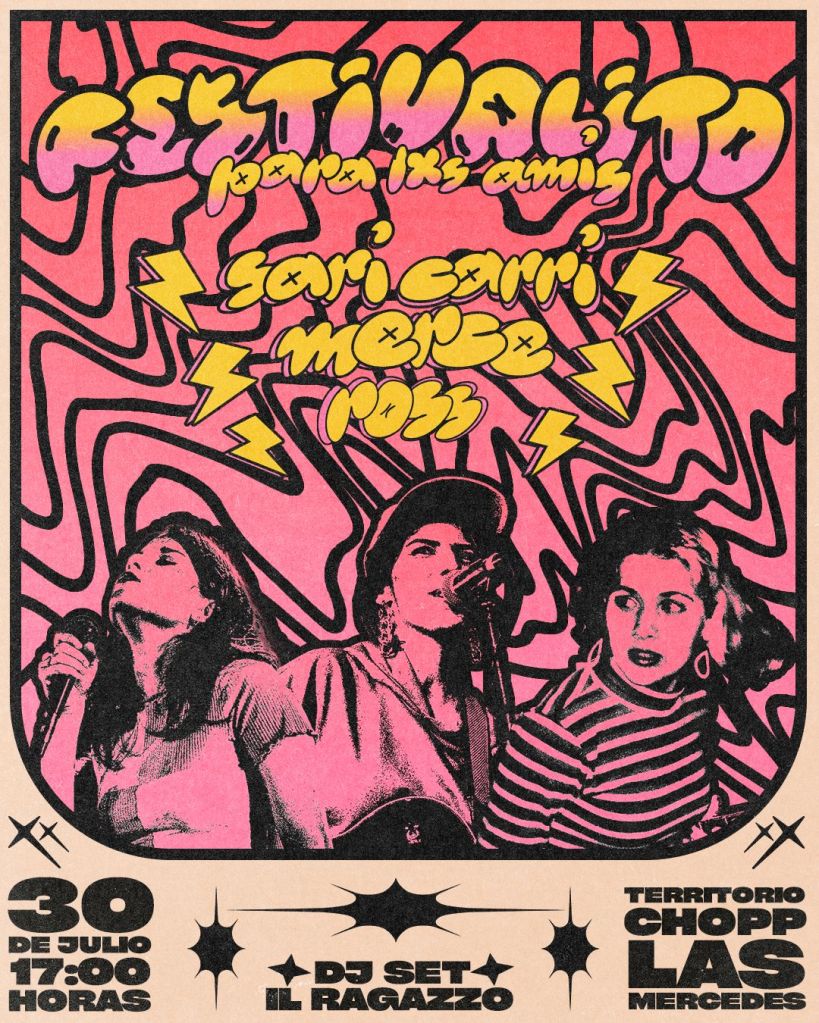 Este domingo 30 de julio desde las 17:00 en el local de Territorio Chopp (las mercedes) se realizará el «Festivalito para lxs amis» con las artistas locales Sari Carri, Merce y Ross.