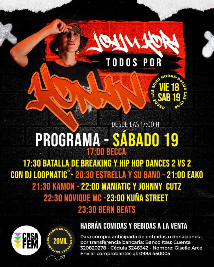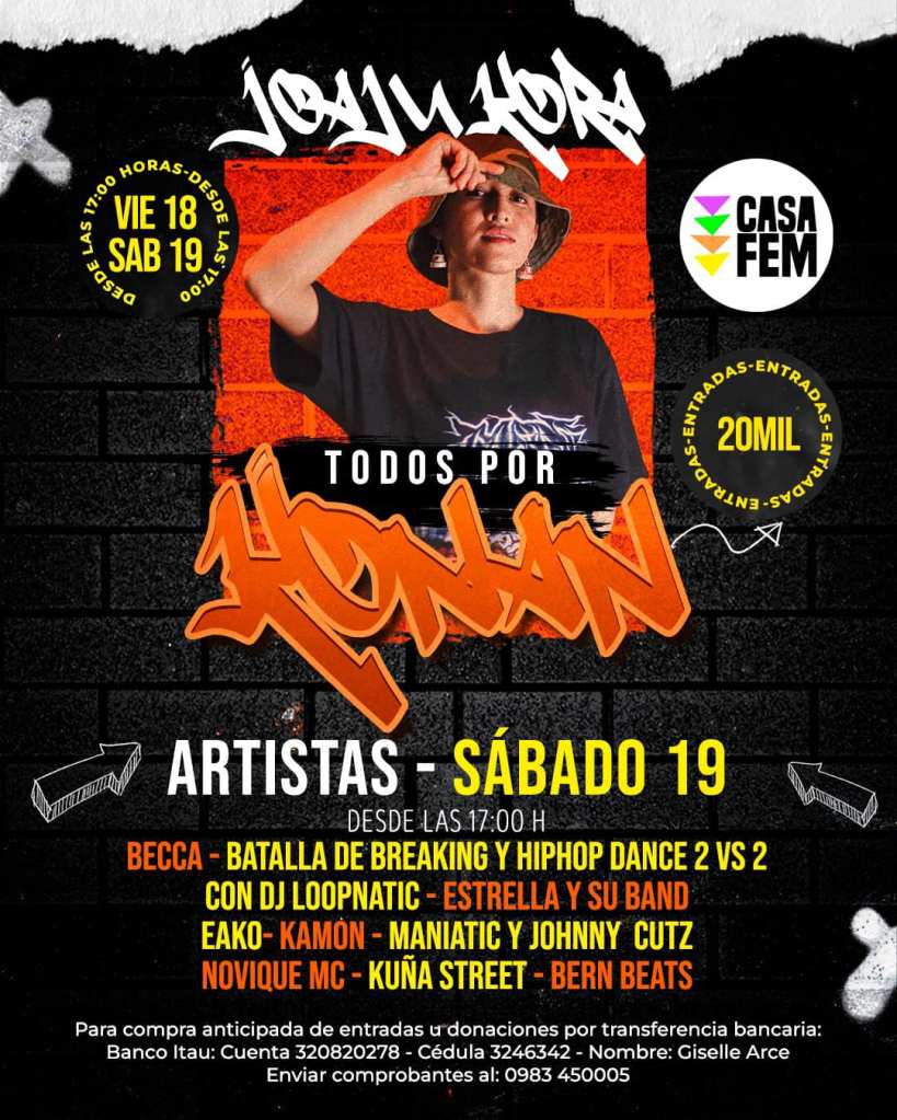 Este viernes 18 de agosto desde las 20:00 y sábado 19 desde las 17:00 se realizará el evento «Todos por Konan» en el local de Casa Fem (México 1073). Se presentarán diversos artistas en vivo, habrá feria, comida y bebidas todo a beneficio de la artista Noemi Ortega mas conocida como Konan, quien recientemente sufrió un accidente de tránsito y se encuentra internada.