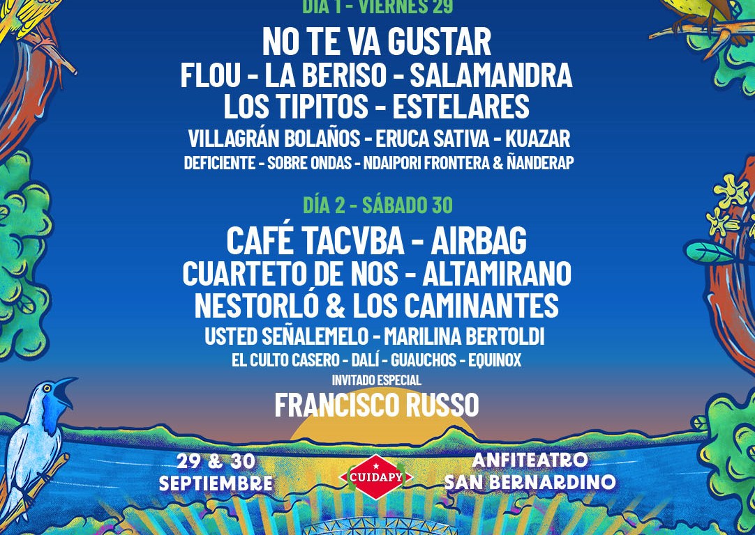 En tanto, FLOU junto a SALAMANDRA encabezan la propuesta nacional y completan el cártel: ALTAMIRANO, NESTORLÓ Y LOS CAMINANTES, VILLAGRÁN BOLAÑOS, EL CULTO CASERO, DALÍ, SOBRE ONDAS, DEFICIENTE, KUAZAR, NDAIPORI FRONTERA Y ÑANDERAP y EQUINOX. Además, se destaca la participación especial de FRANCISCO RUSSO.
