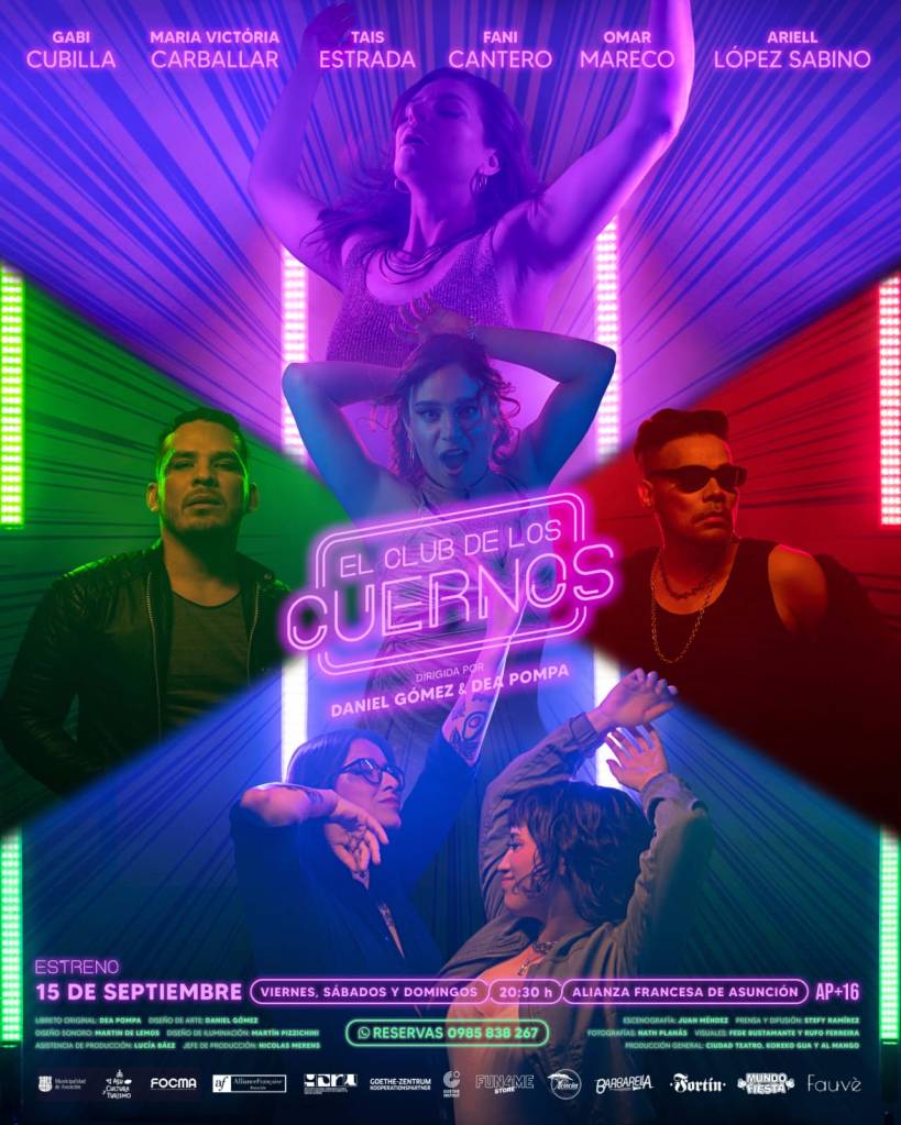 Este viernes 15 de Septiembre a las 20:30hs en la sala Moliere de la Alianza Francesa en asunción, se estrena la pieza teatral «El Club de los Cuernos». Es una comedia dramática escrita por Dea Pompa y dirigida por Daniel Gómez y Dea Pompa, basada en la serie podcast Audiocuernos, disponible en Spotify.