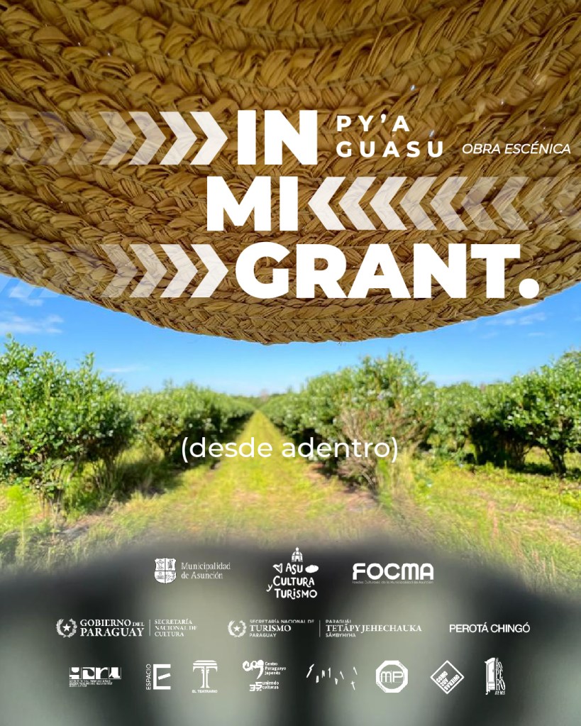 La obra escénica «INMIGRANT, PY’A GUASU (DESDE ADENTRO)» con libreto, visualización y dirección de Fabio Esteche Cabrera, se estrena este viernes con doble función a las 19:00 hs y a las 21:00 hs en el teatro Agustín Pío Barrios del Centro Paraguayo Japonés (Julio Correa y Domingo Portillo).