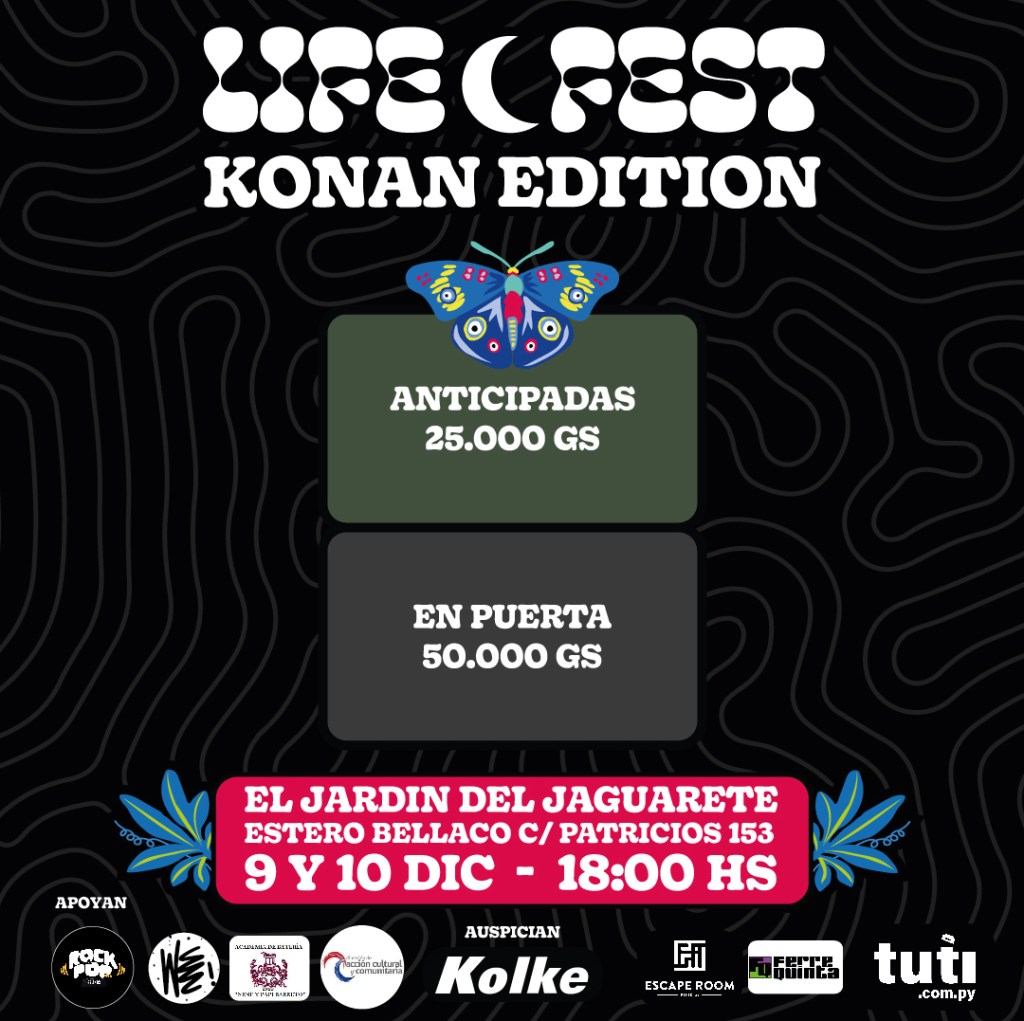 El LIFE FEST 2023 «Konan Edition» llega este 9 y 10 desde las 18:00 hs de diciembre al Centro Cultural El Jardín del Jaguarete. En escena estarán más de 40 músicos con una variedad de estilos y géneros musicales.