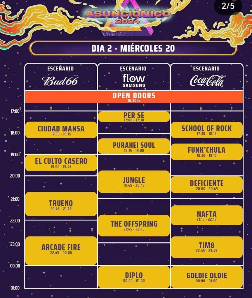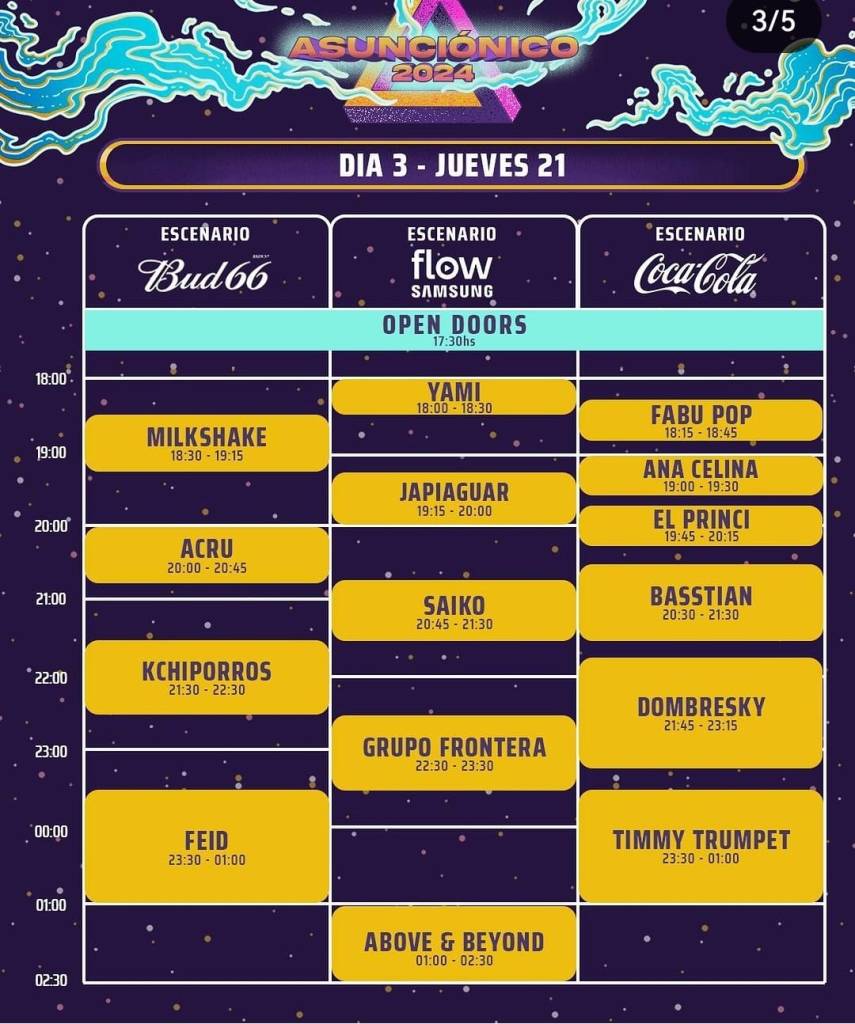 Asunciónico 2024, martes 19, miércoles 20 y miércoles 21 de marzo en el Parque Olímpico