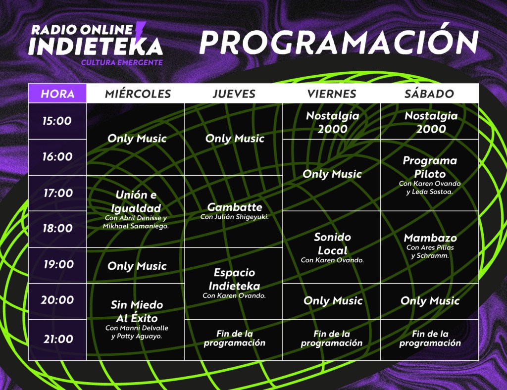Desde el mes abril de este año, Indieteka arrancó la transmisión en vivo de su radio online con mucha música y programas que ofrecen desde entretenimiento y promoción de la cultura hasta programas con enfoque en derechos humanos. Transmitimos la radio de miércoles a sábados desde las 16:00 y hasta las 21:00 hs