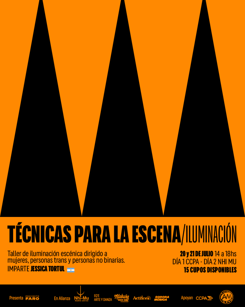 Sobre la alianza Técnicas para la escena: Esta alianza crea espacios formativos para que las mujeres y disidencias tengan la opción de acceder a profesionalizarse en oficios que históricamente son espacios tomados por varones cis.