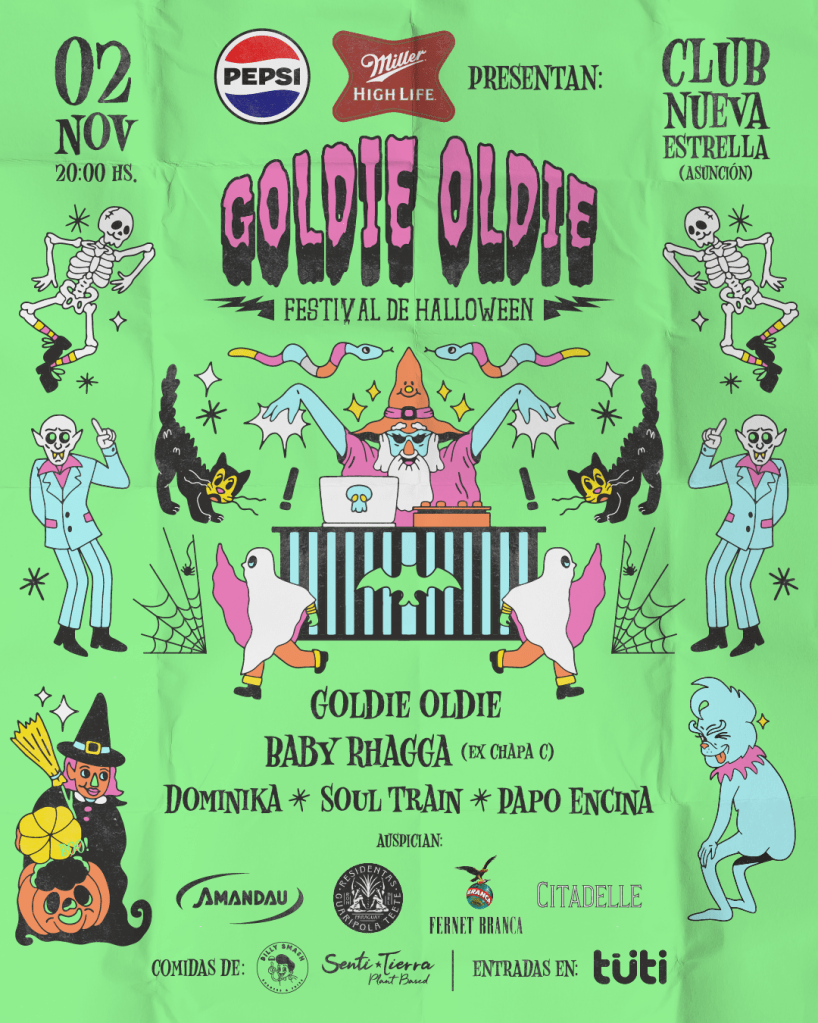 El sábado 2 de noviembre en el Club Nueva Estrella se celebrará una fiesta que ya se volvió una tradición entre el público joven de Asunción y alrededores, la fiesta retro de Halloween organizada por la Goldie Oldie que este año se agranda en forma de festival con un lineup que ofrece lo mejor de la música retro y el retrotón.