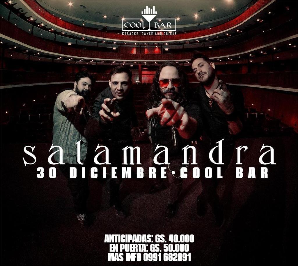 La banda paraguaya de pop rock SALAMANDRA, dará un show en la ciudad de Luque este lunes 30 de diciembre. La cita es en el local de COOL BAR, sito en comandante Peralta Nro. 93 C/ Mcal. Lopez,