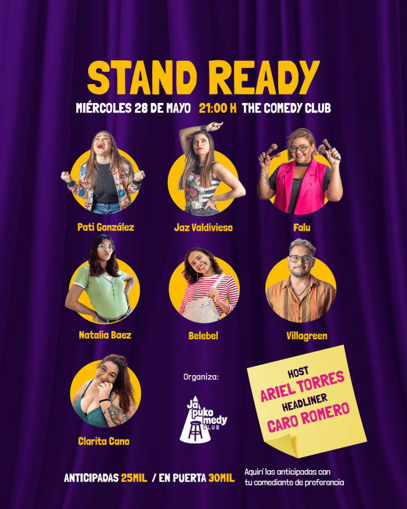 Entradas anticipadas: Gs. 25.000. Podés adquirirlas directamente con tu comediante favorito o vía WhatsApp al 0972 708090 (mencionando el nombre del artista)