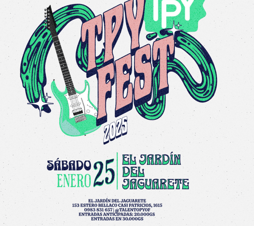 Talento Paraguay Oficial anuncia la sexta edición del TPY FEST 2025, un festival que desde su creación en el año 2023 ha tenido como objetivo reunir a artistas de todos los géneros y niveles de experiencia para ofrecer una plataforma de visibilidad y apoyo. Este evento se llevará a cabo en El Jardín del Jaguareté este sábado 25 de enero y presentará una variedad interesante … Continúa leyendo TPY FEST 2025: Un Festival que Celebra el Talento y la Diversidad Musical Paraguaya